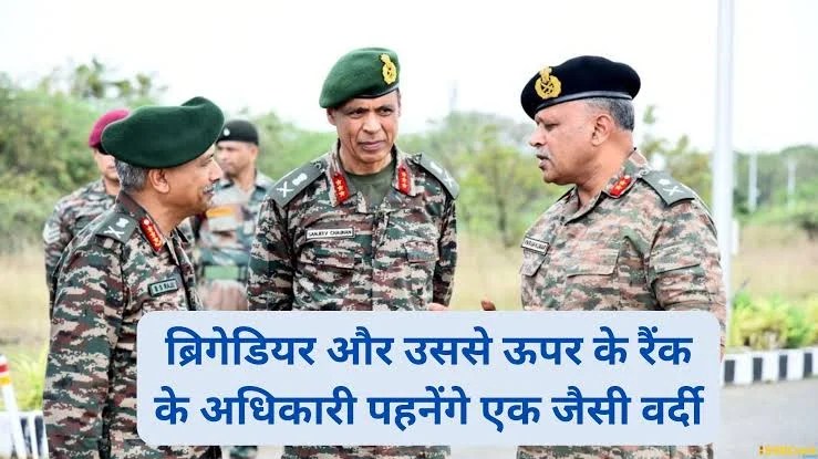 सेना में ब्रिगेडियर उसके ऊपर के रैंक के अधिकारी अब आपको एक जैसी वर्दी में नजर आ सकते हैं सेना ने फैसला किया है कि 1 अगस्त से ब्रिगेडियर और उसके ऊपर रैंक के अधिकारियों की वर्दी एक जैसे होगी।